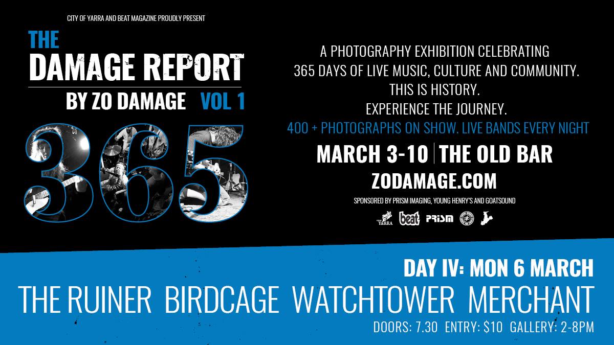 THE DAMAGE REPORT – Day 4: The Ruiner, Birdcage, Watchtower, Merchant. The Old Bar, Melbourne. 06-03-2017.