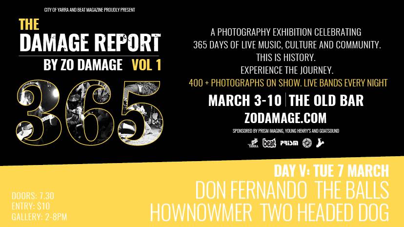 THE DAMAGE REPORT – Day 5: Don Fernando, The Balls, Hownowmer, Two Headed Dog. The Old Bar, Melbourne. 07-03-2018.