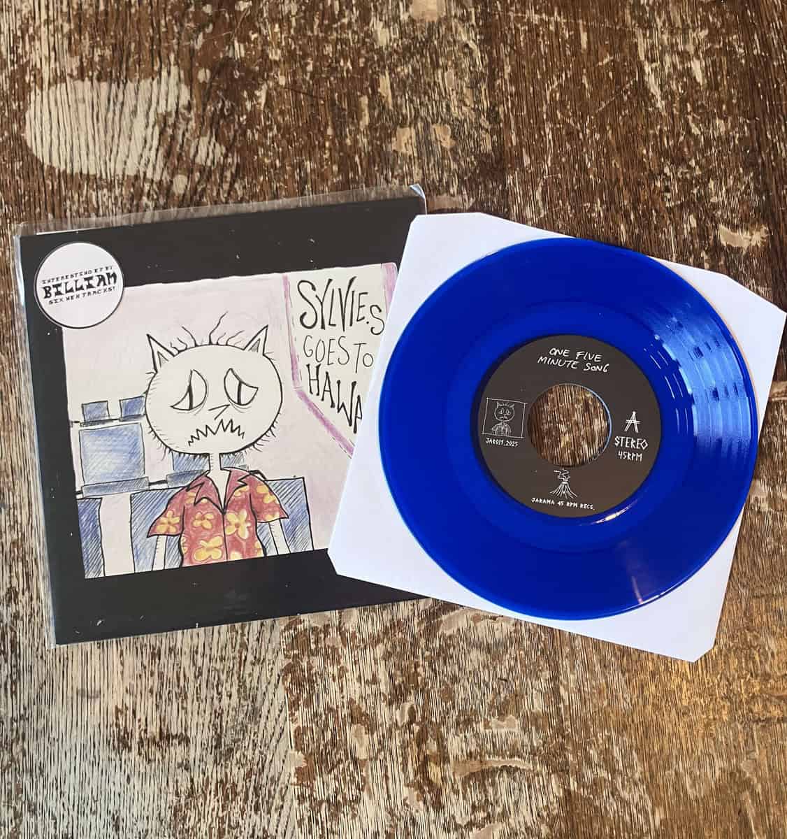 “the maximum length of a 7 inch 45 RPM vinyl record is ten minutes, five per side. this ep is has been made to be the exact maximum length possible on a 7 inch vinyl record with one five minute song on the a side, and five one minute songs on the b side.”
