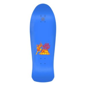 The Santa Cruz Skateboards Steve Alba Tiger Reissue deck features neon Santa Cruz Salba Tiger artwork on a fully dupped blue deck with 2 sets of front mounting holes for an adjustable wheelbase of 14.5 or 15 inches.