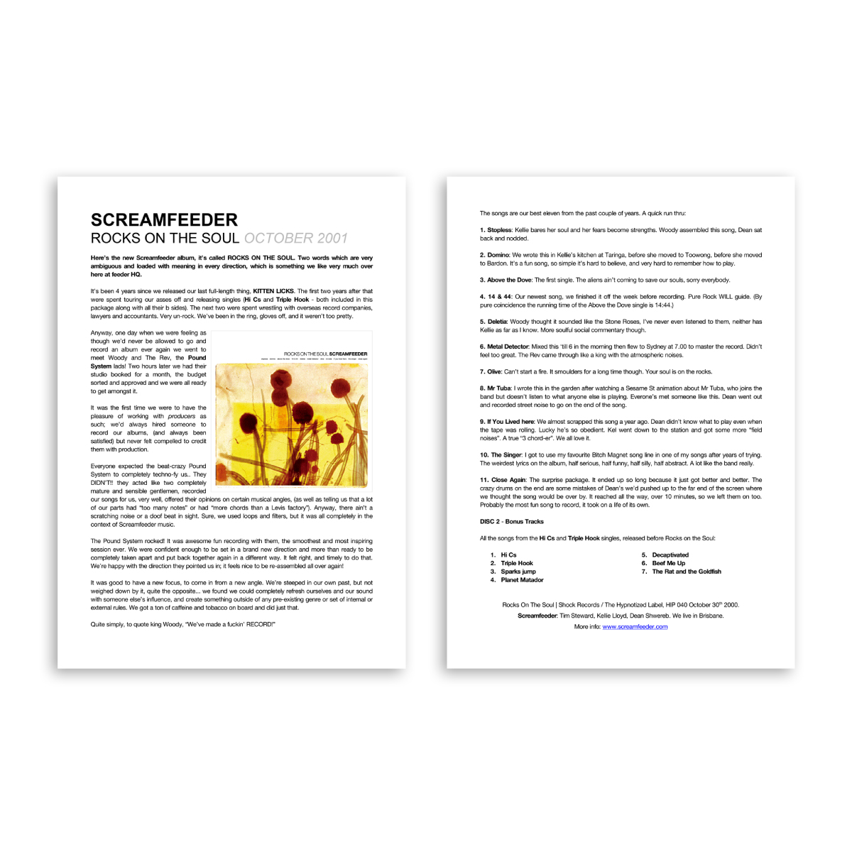 Rocks On The Soul was Screamfeeder’s fifth studio album released 9 years after forming and 8 years after their 1992 debut LP Flour.