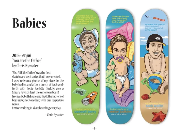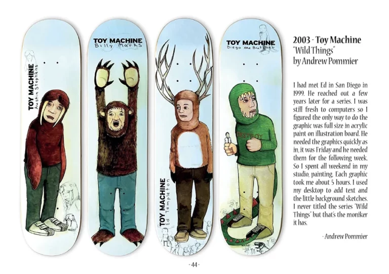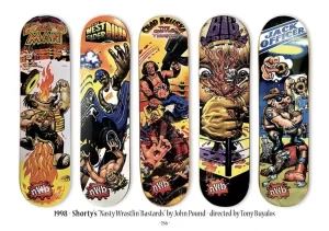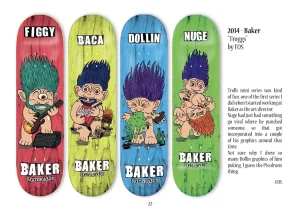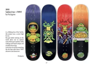 Through 40 years, 164 pages and 1200 decks showcased, this book is a tribute to the creativity of skateboard artists. It focuses on “classics” of the skate-design and explores their multiple “echoes” made over time.
